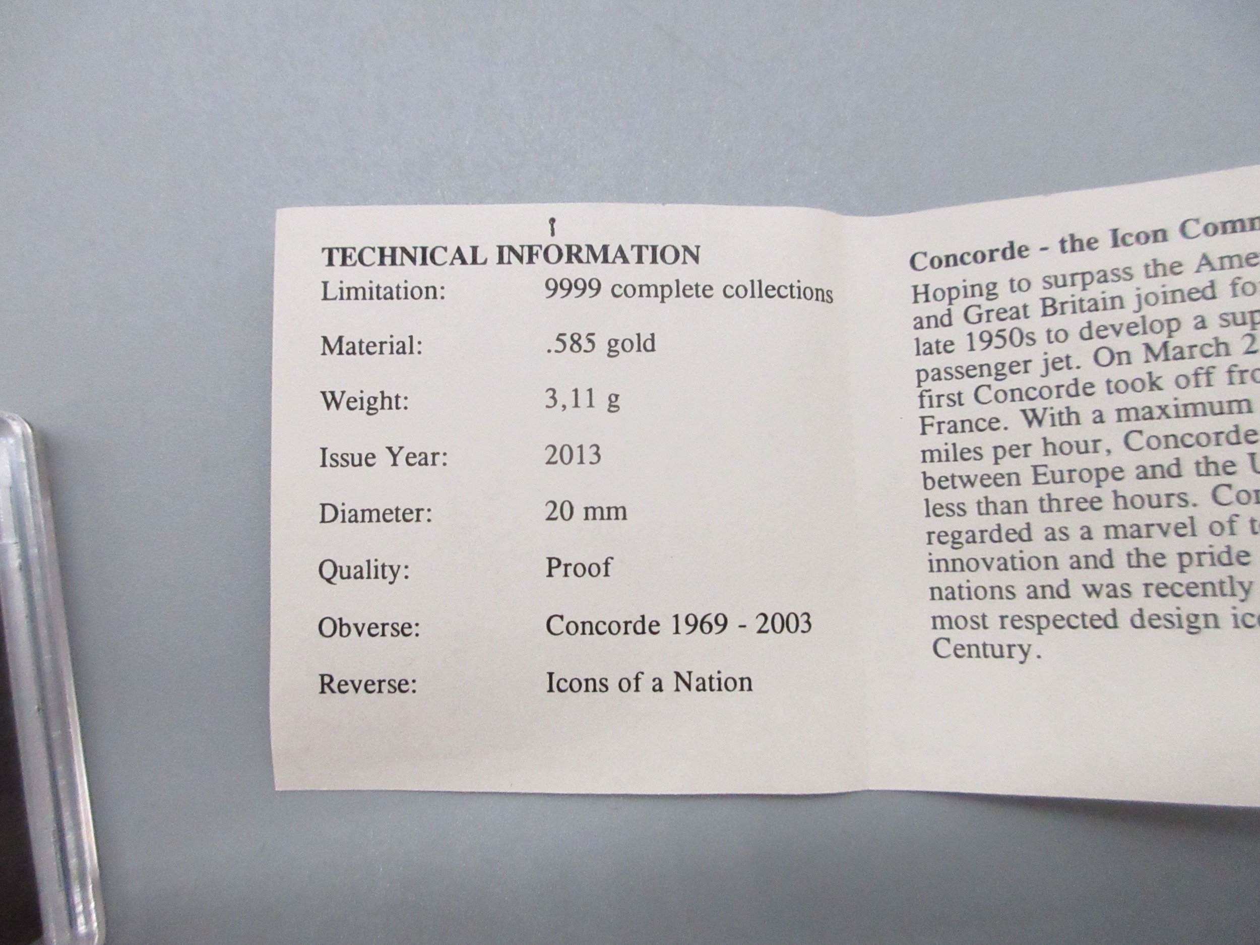 Concorde The Final Farewell .585 3.1g gold coin, encapsulated with COA