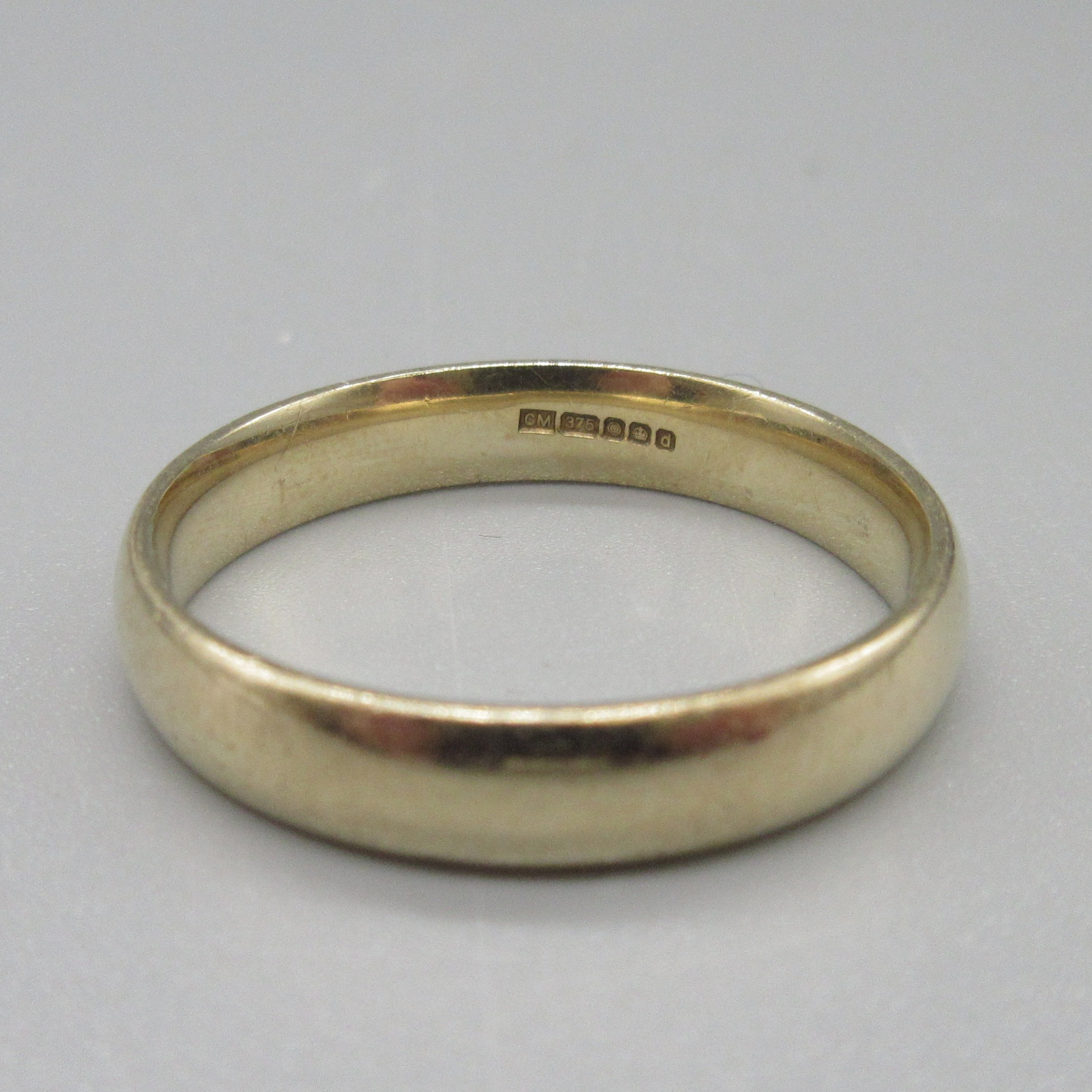 9ct yellow gold wedding band, stamped 375, size V, 3.9g