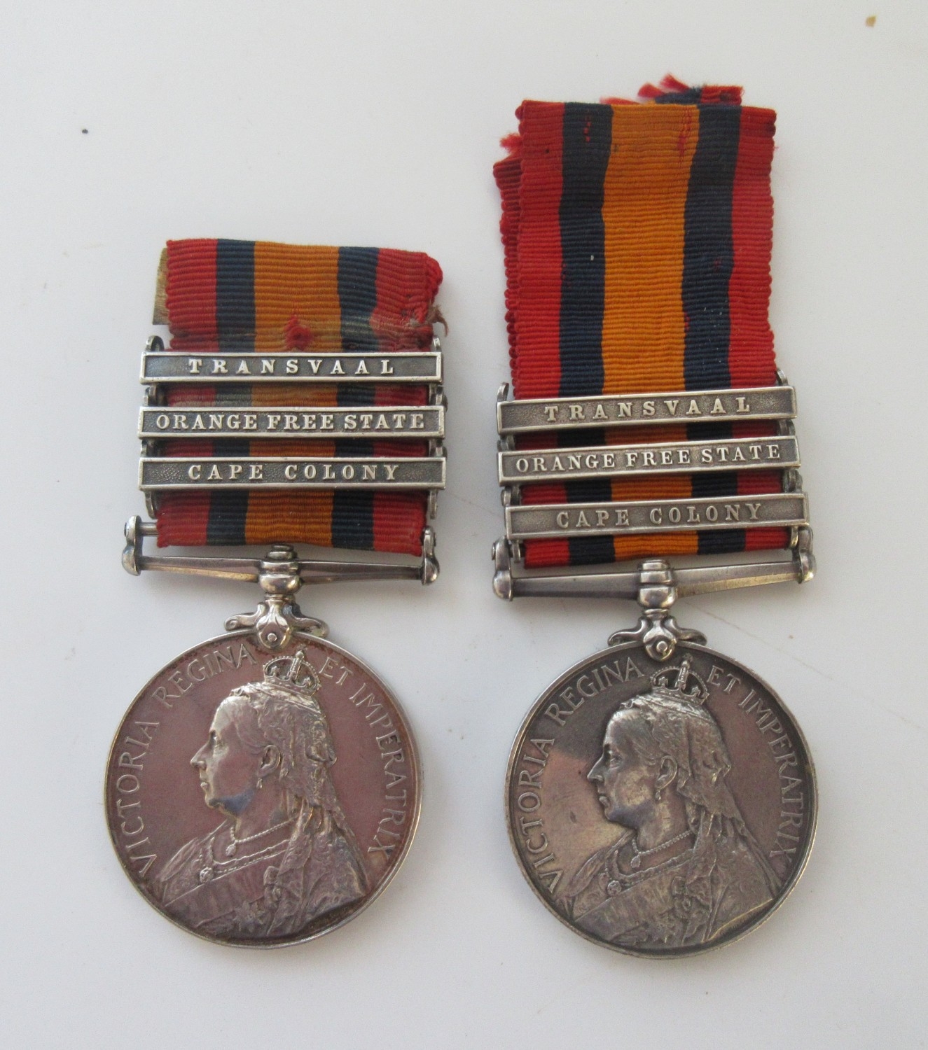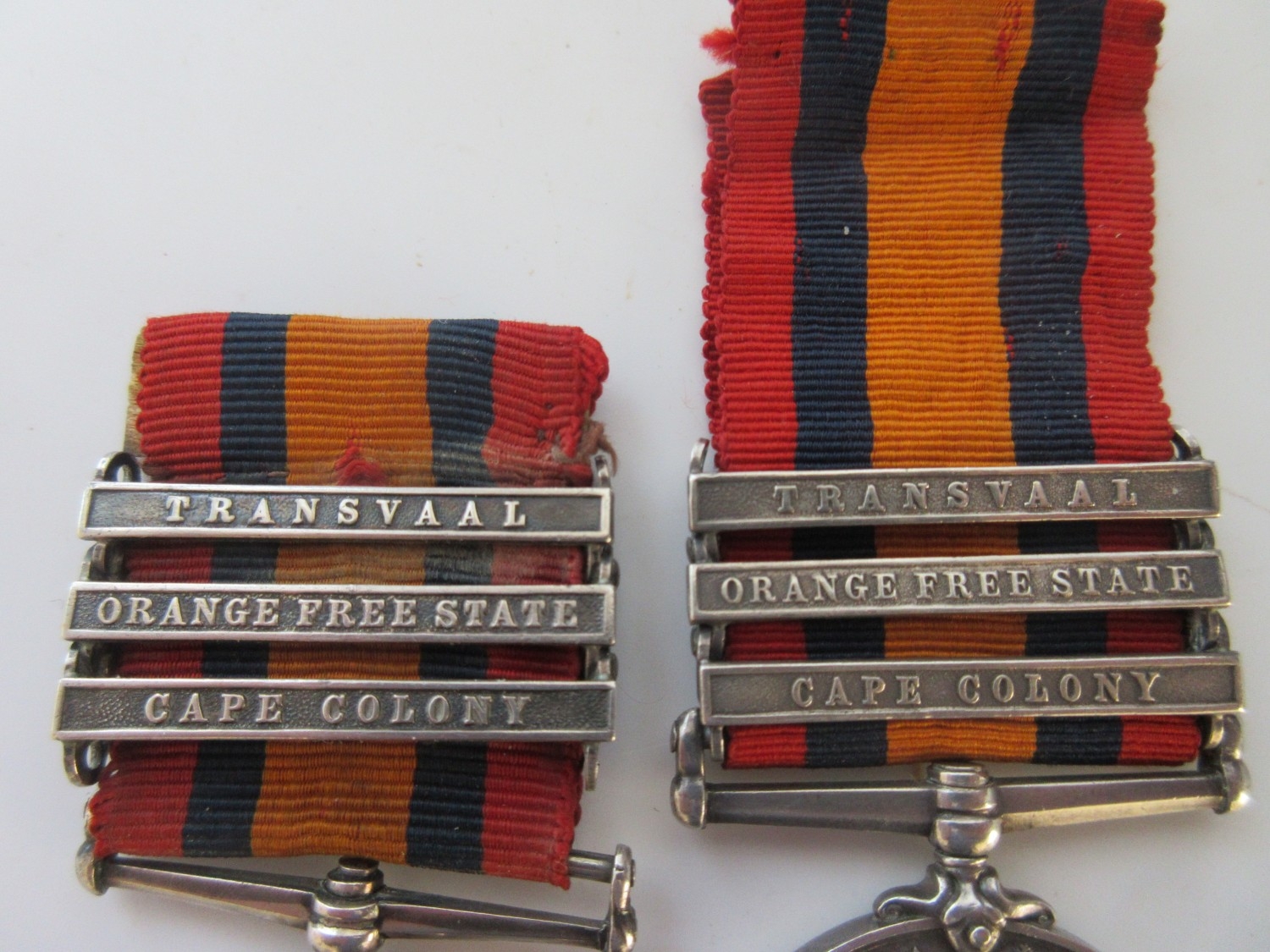 Two Queens South Africa Medal with three clasps, Transvaal, Orange Free State, Cape Colony. To 2960 Pte J.T. Humberstone 2nd Lincoln Regiment. 3310 Pte A.W. Mandlin 15th Coy 5th Imperial Yeomanry