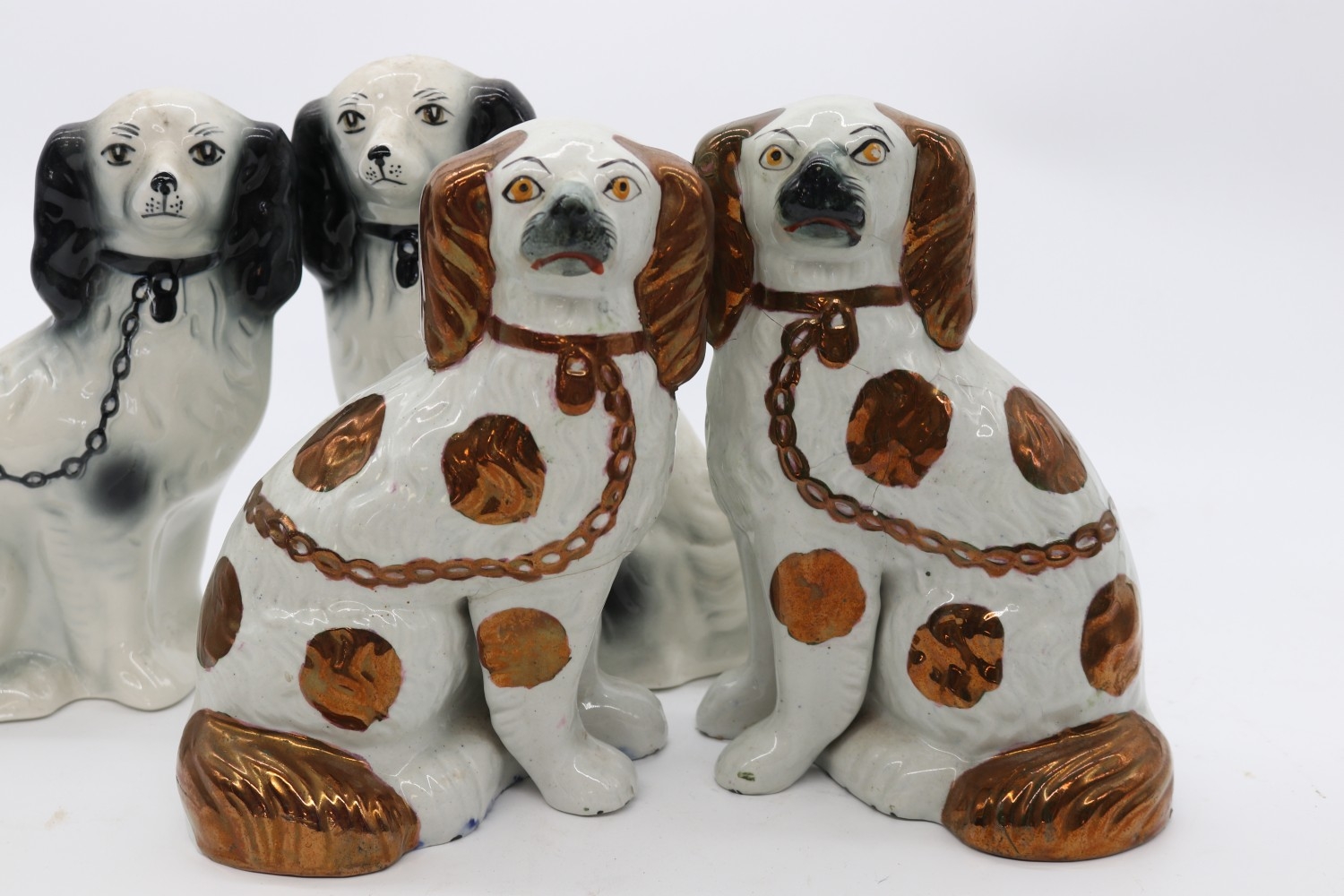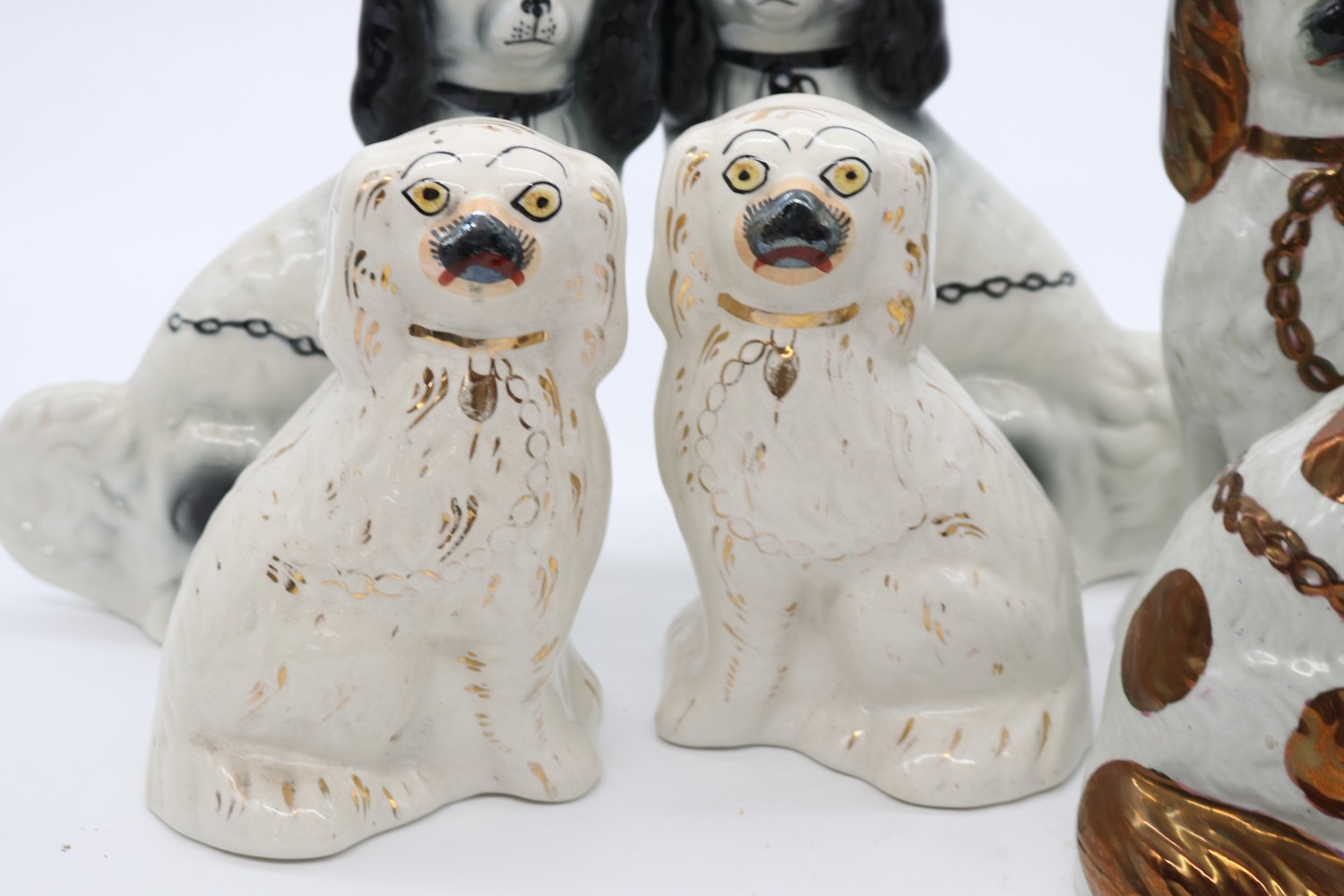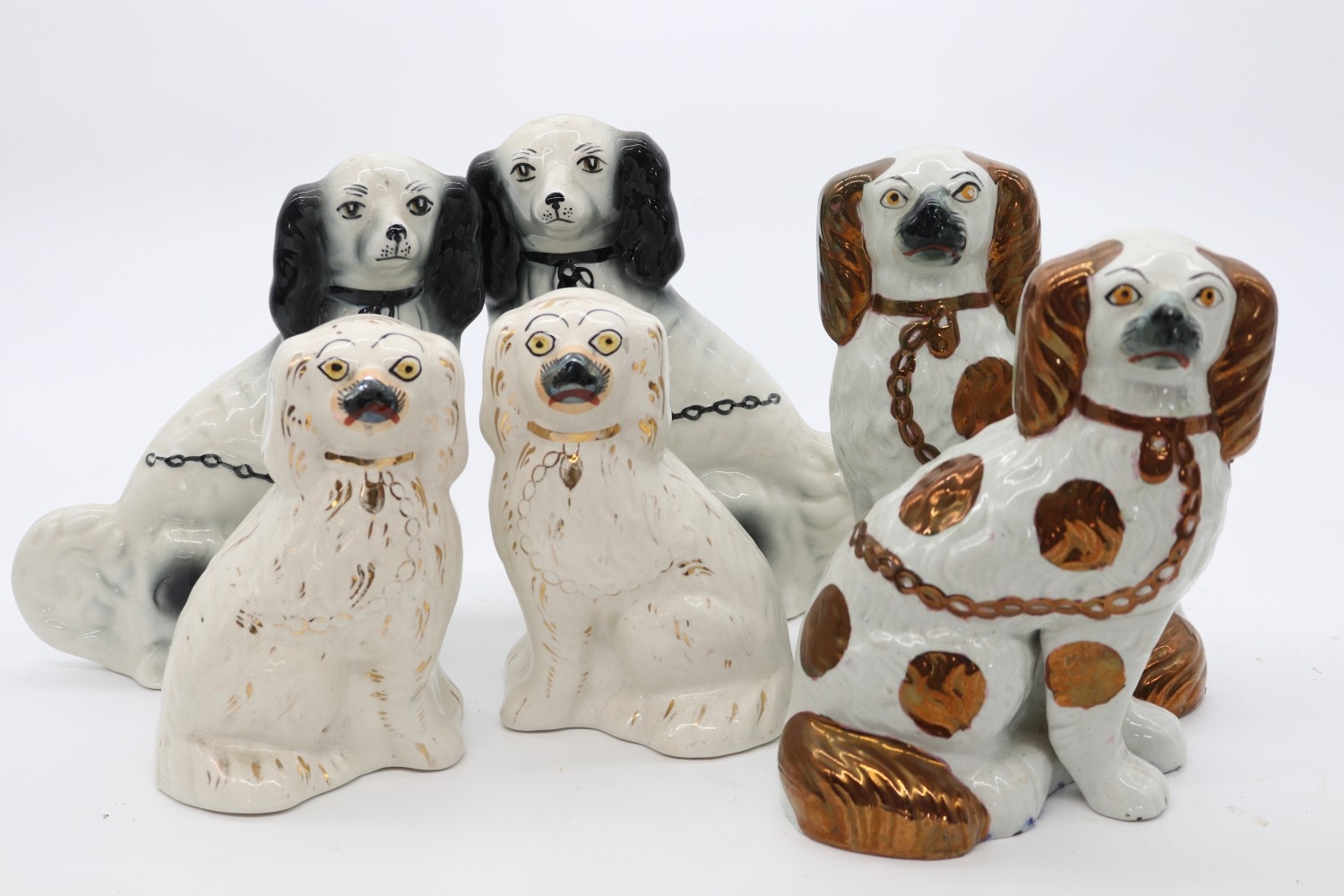 Three pairs of Staffordshire dogs, max H21cm