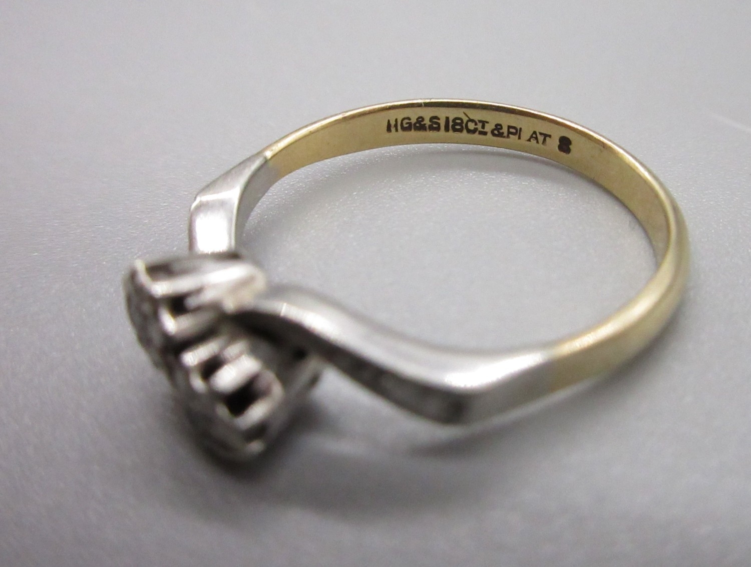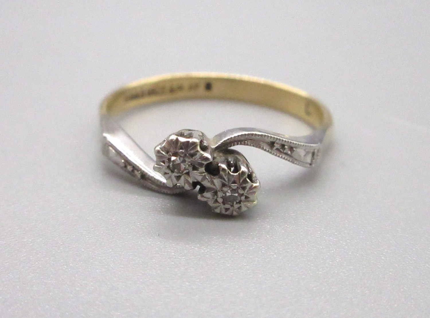 18ct and platinum 2 stone ring, size M 1/2 (2.3g)