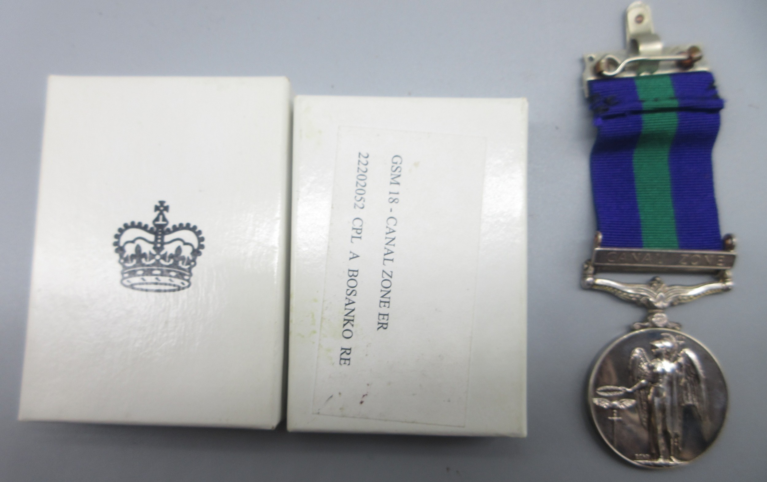 General Service Medal 1918-62 (Queen Elizabeth II) with Canal Zone clasp To. 22202052 Cpl A Bosanko RE