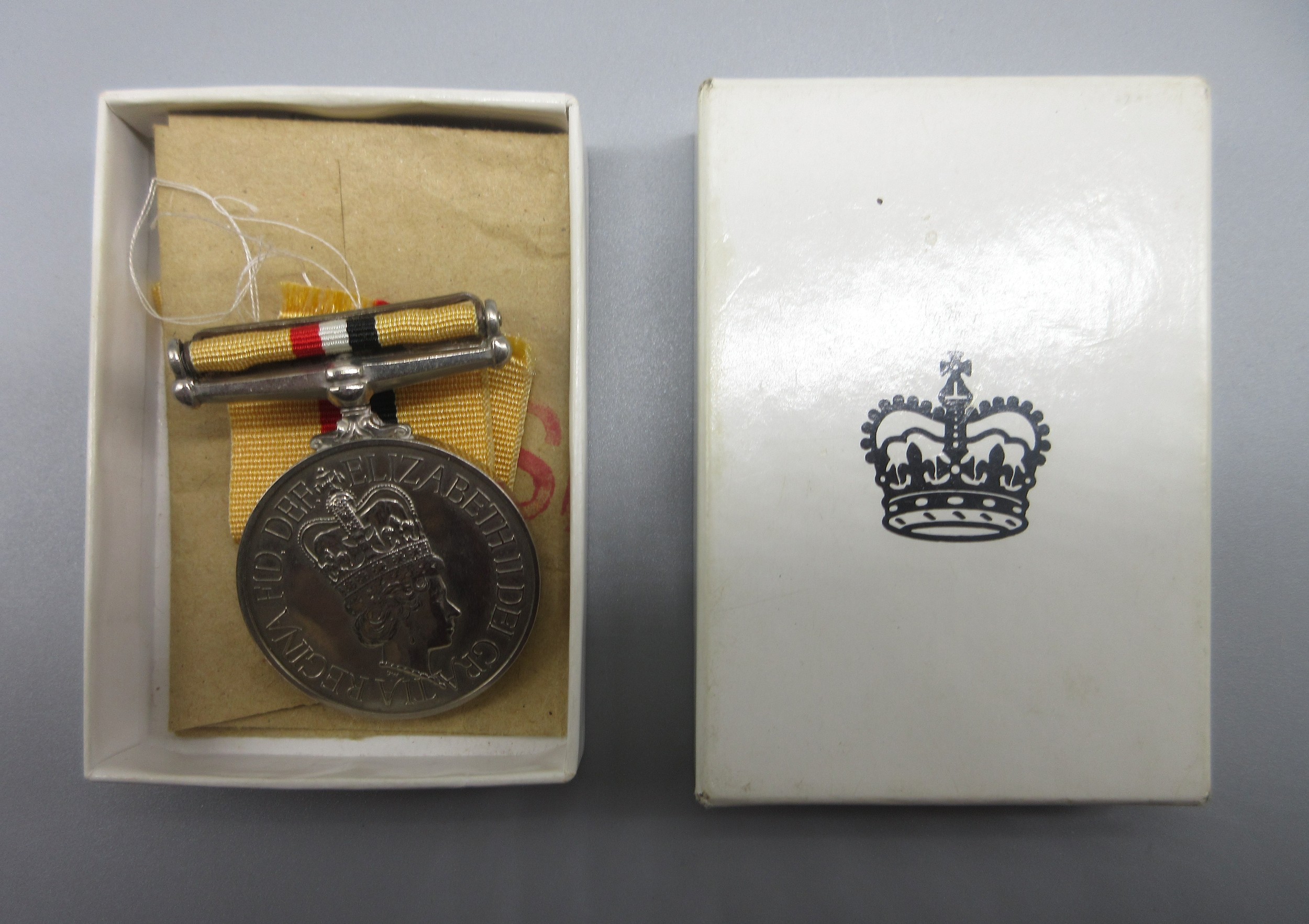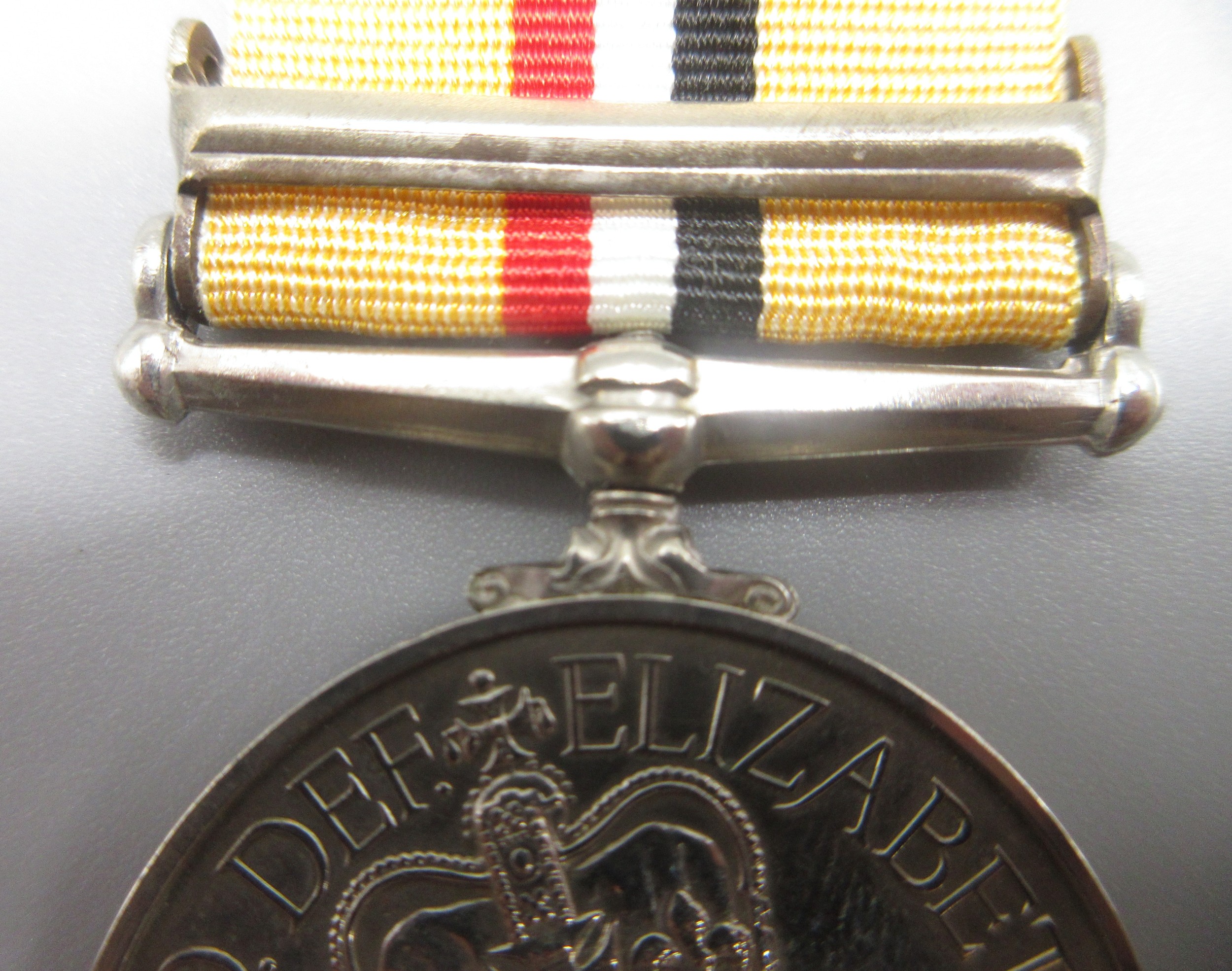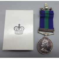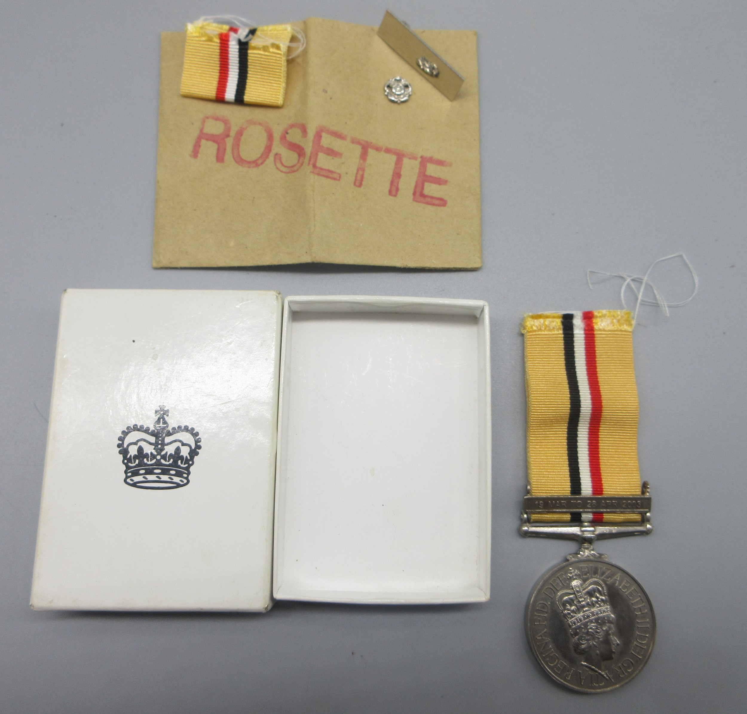 Iraq Medal with clasp 19 March to 28th April 2003 To. 25140872 Gnr. P. A. James RA, with rosette, this medal was awarded to all military and civilian personnel involved in Operation TELIC in Kuwait and Iraq from January 2003