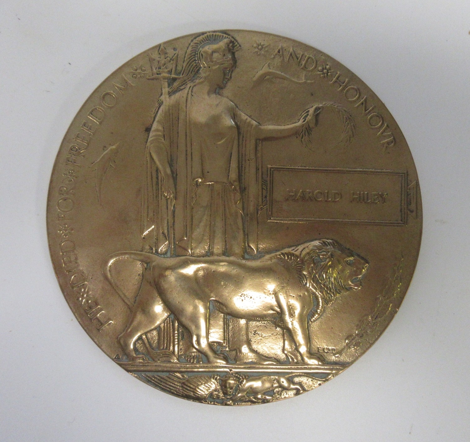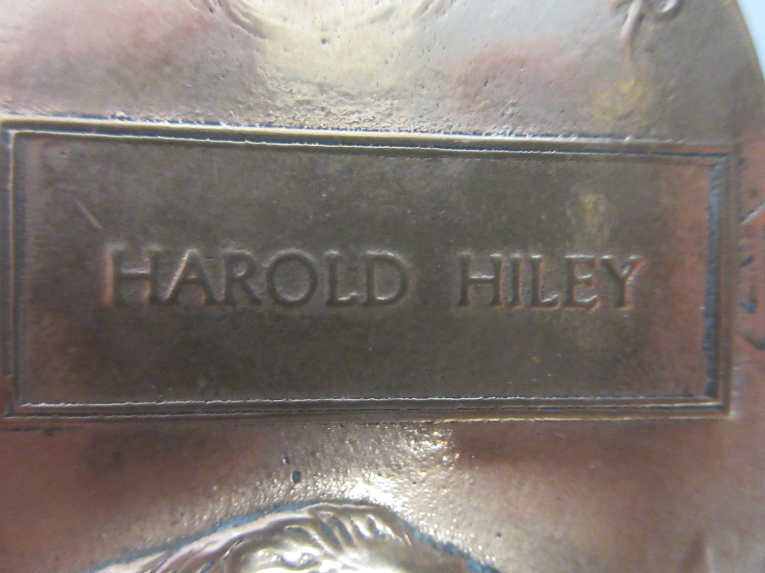 Memorial Plaque sent to the family of Harold Hiley
